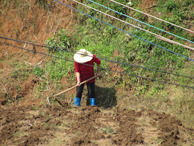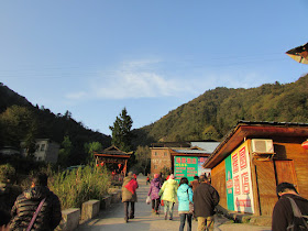 前一日還是多雲有微雨,是日又回復藍天,雖然導遊也提醒我們山上可能會下雨或有霧,然而最後並非如此。七點半起床,起床時霧氣頗重,但很快就消散了。八點半吃早餐,其中米粉較前一天還還要辣一點。九點多一點就乘車往莽山,全程約兩個半小時,途經長村服務區時,旁邊正有一座典型的農村,屋子排列得相當整齊,農民也開始新一年的農耕任務,於是就立即舉起相機留影。最多「景點」的地方其實在車上,因為可飽覽窮鄉僻壤的農村風光(雖然在高速公路及省道邊的農村,根本不算太「僻」),在香城是根本不能看到如此畫面,相信更具「旅遊」的意義。常人口中的「旅遊」,實際只是換個地方購物,入住豪華酒店或享用自助餐罷了。
