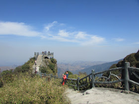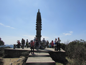 抵達天台山景區入口時海拔已有近一千五百米,再上約一百米樓梯就是萬壽塔,那裡有個四叉路口,可往「小天台」、較高處的「大天台」或「金鞭神柱」。是日萬里無雲,是山上難得一遇的好天氣,真的有運。