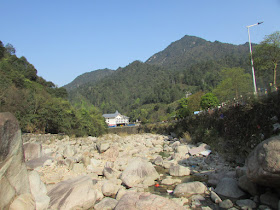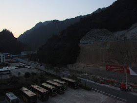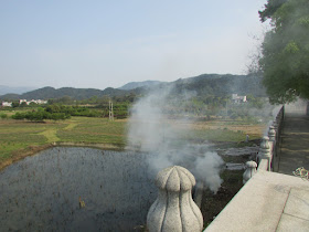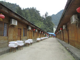 早上醒來時已見明亮的朝霞,可惜未能攝到旭日初升的畫面。八點半到餐廳早餐,然後在景區入口附近閒逛,期間看到有一些民工,在旁邊的河流搬來一些大小相約的石塊用作修建堤圍,時光像是回復至幾十年前般,另外聽到有團友打翻店裡的玻璃瓶,最後不知怎樣了。逛過一會,返回房間略為休息,十一點就退房,並在前一天的晚飯地點午餐。