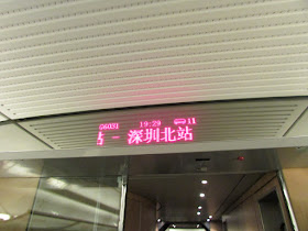 乘G6031次高鐵回深圳北,晚點約九分鐘,似乎乘客量很多的關係,改以兩列列車重聯而成。到深圳北時,十幾隊旅行團、過千名旅客一齊浩浩蕩蕩的出閘,排隊等候地鐵安檢也要花近十五分鐘時間。晚上九點,關口仍是大排長龍,往市區的車廂則水洩不通,大家盡興過後,「明天記得準時上班」了。