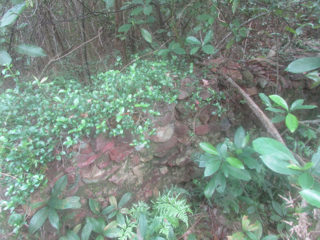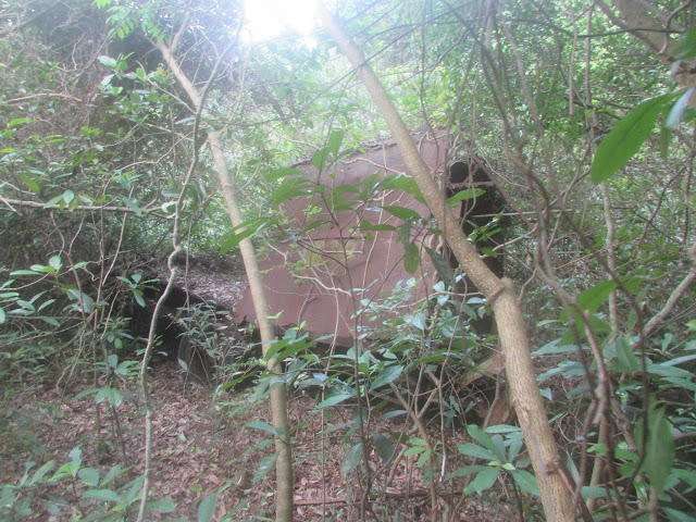 原路上走至較開揚處,穿過廢村出紅石門,在近紅石門的一個明顯路口試沿另一道小徑直落內灣,岸邊停著一台貨車(當然已荒廢),雖然可見海邊,不過前路已被重重樹藤包圍著,而另一邊出海邊的小徑亦被水淹,結果又要返回山崗路口再落紅石門。