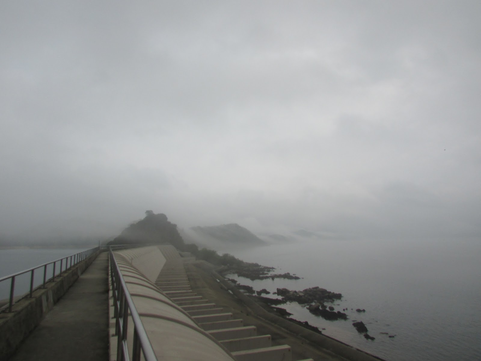 經長2.1公里的船灣淡水湖主壩,天文台早就說了沿岸有霧: