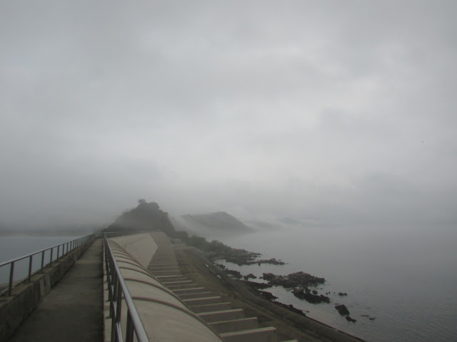 早上很不幸的在兩個轉車站不斷的「送車尾」,加上又要在沙田讓直通車先行通過,結果車程較平時多花了達廿分鐘。九點十五分在大尾篤起步,初時非常大霧,沿主壩慢慢的走,伴隨海風吹拂,只是那裡小飛蟲實在太多,甚至可以把牠們吸進體內,沒想到那裡已是全天最舒服的一段了。繼續在大壩、副壩走,海霧在岸邊瀰漫著,可謂充滿詩意。