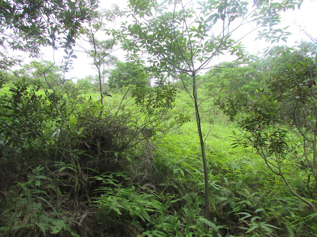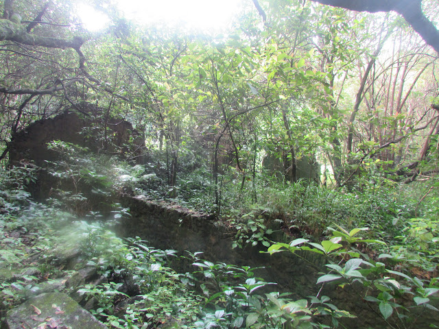 叢林深處有一廢屋,先爬上田基: