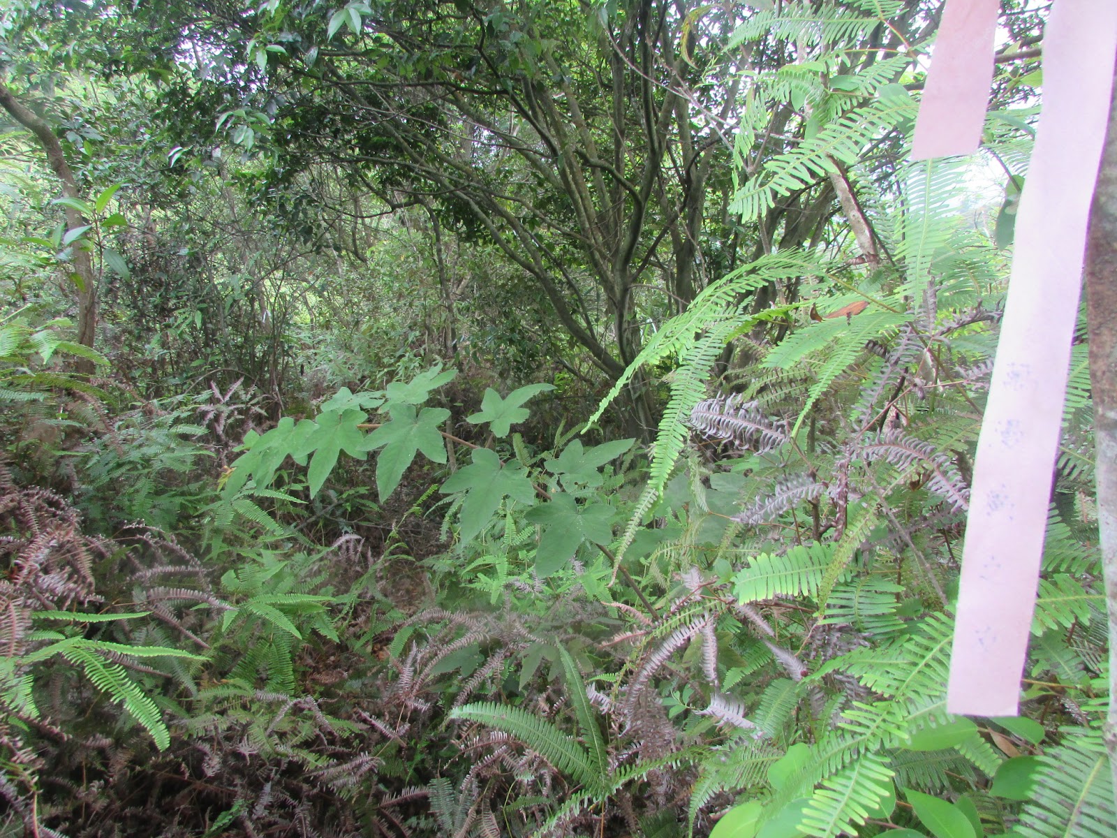 那隊遠足隊,月初才走過此路,同日也走過「湘采龍脊」、「曹舅脊」,下回要跟著那些粉紅色的引路帶: