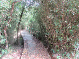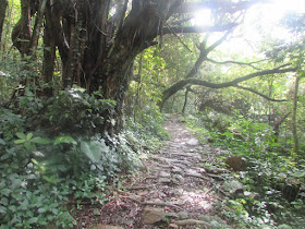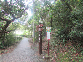 由大尾篤巴士站起步,在龍尾村依捷徑上引水道,可惜未能找獲上山入口,要沿馬路上行繞經遊客中心。左轉幾分鐘,穿過引水道小橋上山。初段是樹林,由於早上下過雨,所以植物也頗多積水。上了半小時,發現有點「不對路」,原來GPS地圖顯示正往馬騮崖方向上山,但明明沿途無其他支路,回走一段也不見明顯小路,相信是走錯入口了。爬崖並非行程的一部分,所以折返八仙嶺自然教育徑,再在仙姑峰東麓的山腰中慢慢上走,最高點海拔達360米,也是難度最高的自然教育徑。