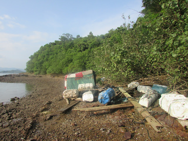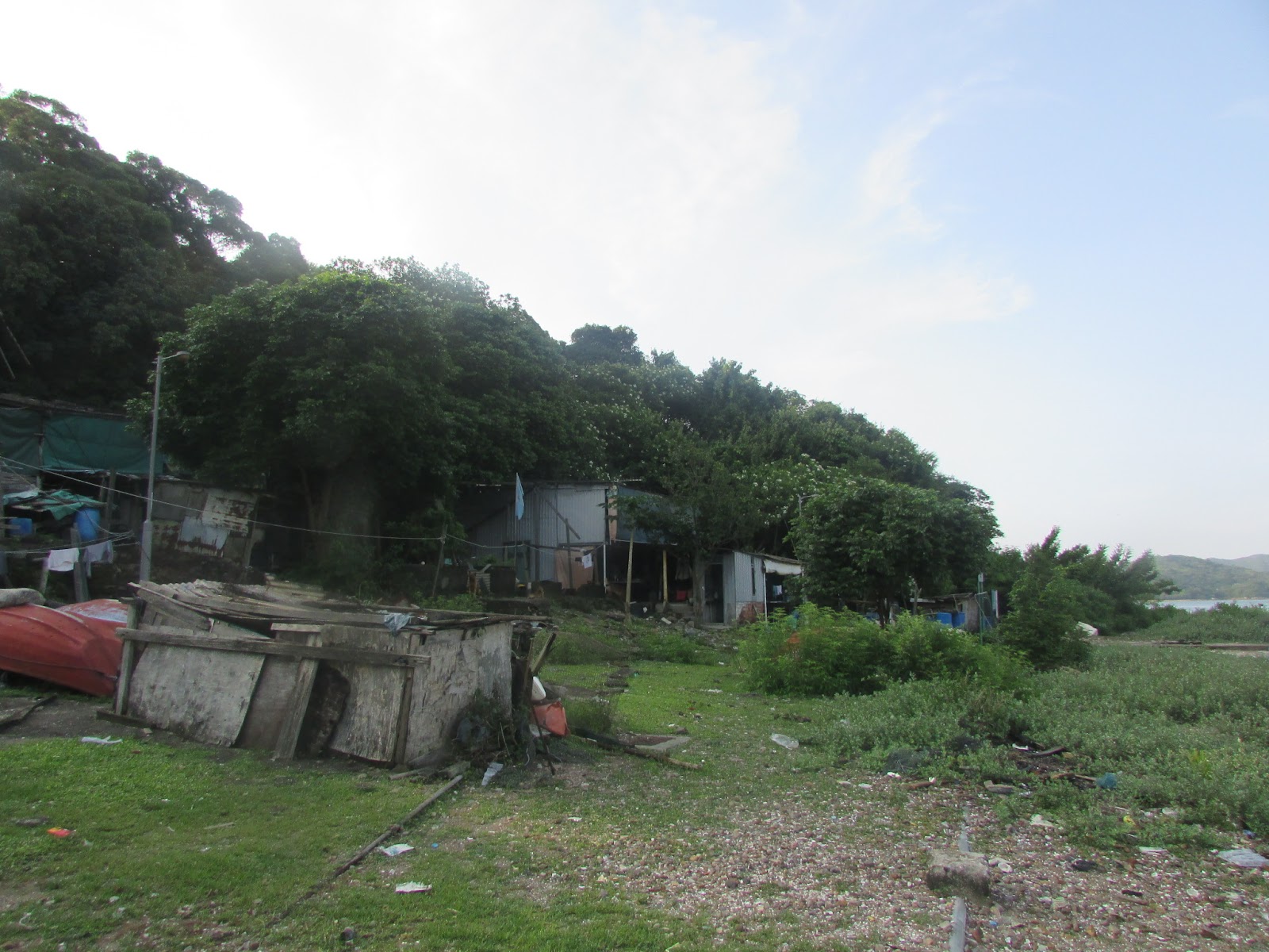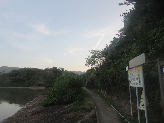 六點十五分完成綑邊,天氣還是熱,先停在碼頭涼亭小休,期間又跟士多老闆碰面了,原來他們平時住沙頭角,因為小孩要上學,逢周末假日就回村經營士多。稍休過後,經「下路」回烏蛟騰,行程完成時天色幾近全黑了。往三椏涌的路上,以及近九擔租的一段,雨後還是滿被水淹或厚厚泥濘的畫面,似乎雨季時走東北區要有心理準備了。