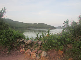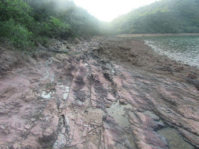 補給後經公廁旁小徑過牛屎湖村,正值春夏交替時期,加上那道小徑是「上網熱點」,先拾起樹枝作「上網先鋒」,不過途中蜘蛛網數量出奇地不多,或許剛才有遊人走過,趁退潮經廢村再綑邊吧。不消半小時到牛屎湖廢村,那是傳說中的「一夜棄村」的地方,不過從附近村民口中得知事實應非如此。前兩天下過大雨,村中小溪有明顯流水,更發現很多蟹類在廢村周圍活動。經廢村堤壩落海邊,路邊的濕土有一些野豬蹄印,由村腹、村徑路邊、至近海邊處都有,蹄印也有點深,如果有人上落時,忽然有頭大野豬在旁走過,肯定會被嚇怕了,不過大白天時幾乎沒可能遇上此畫面。
