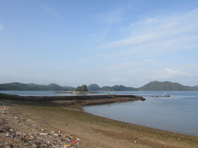 繞經牛屎湖內湖,開始綑邊之旅,走了十五分鐘到西流江,在大退潮時還可走至旁邊的「烏排」,不過已經錯過最低潮的時間,故不能踏足其上。西流江是少數還未荒廢的偏僻小村,裡面有兩排寮屋,村民以捕魚等為生,村中的學校據說會改為戒毒所。晴天下的西流江,景觀尤佳,那裡可近賞印洲塘、印洲及虎王洲的景致。一到西流江,村中的三頭小犬就「例行公事」的迎接坳仔,村裡的老婆婆隨即過來「打招呼」,第一句就問「咁晏嘅?」,是的,現在已是五點多,正常的遠足人士也不會在這個時間身處如此偏僻漁村。閒聊幾句,再漫步岸邊,經拗魚咀往三椏村。賞景之餘,別忘內灣中可能會吸腳的泥沼,而拗魚咀至三椏村一段有少部份位置也需要攀爬,不過難度不高,有遠足經驗者可應付到。