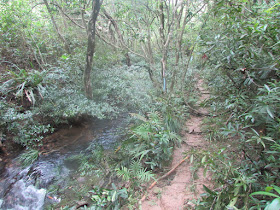 舅娘脊的小徑亦相當明顯,但部分位置仍是頗為滑腳,再穿越一段密竹林後很快抵達八仙嶺自然教育徑。那裡其實是個小十字路口,對面可續走經「金童脊」落涌尾附近,不過金童脊已於去年八月走過,所以就依大路直落新娘潭。