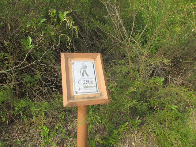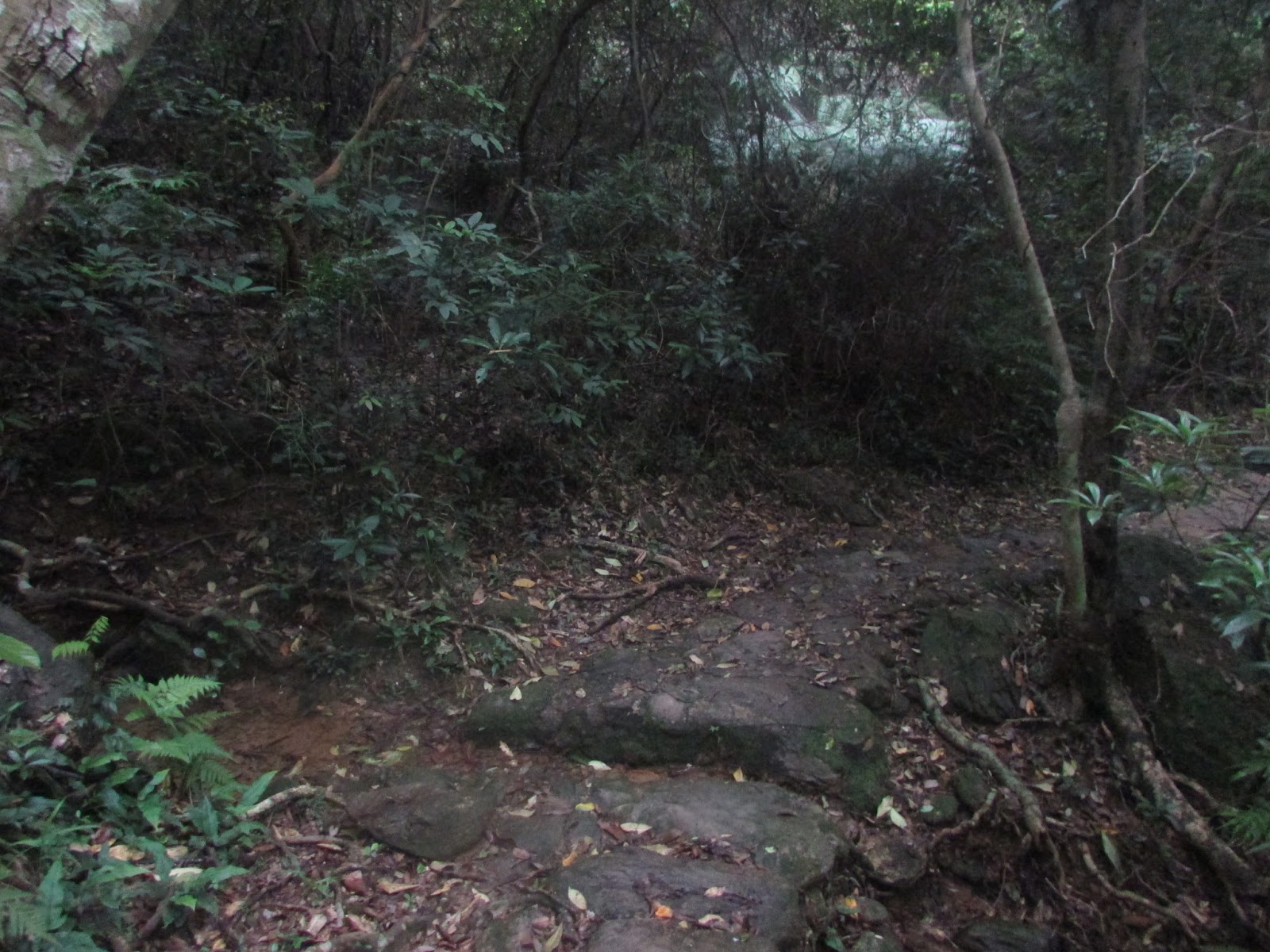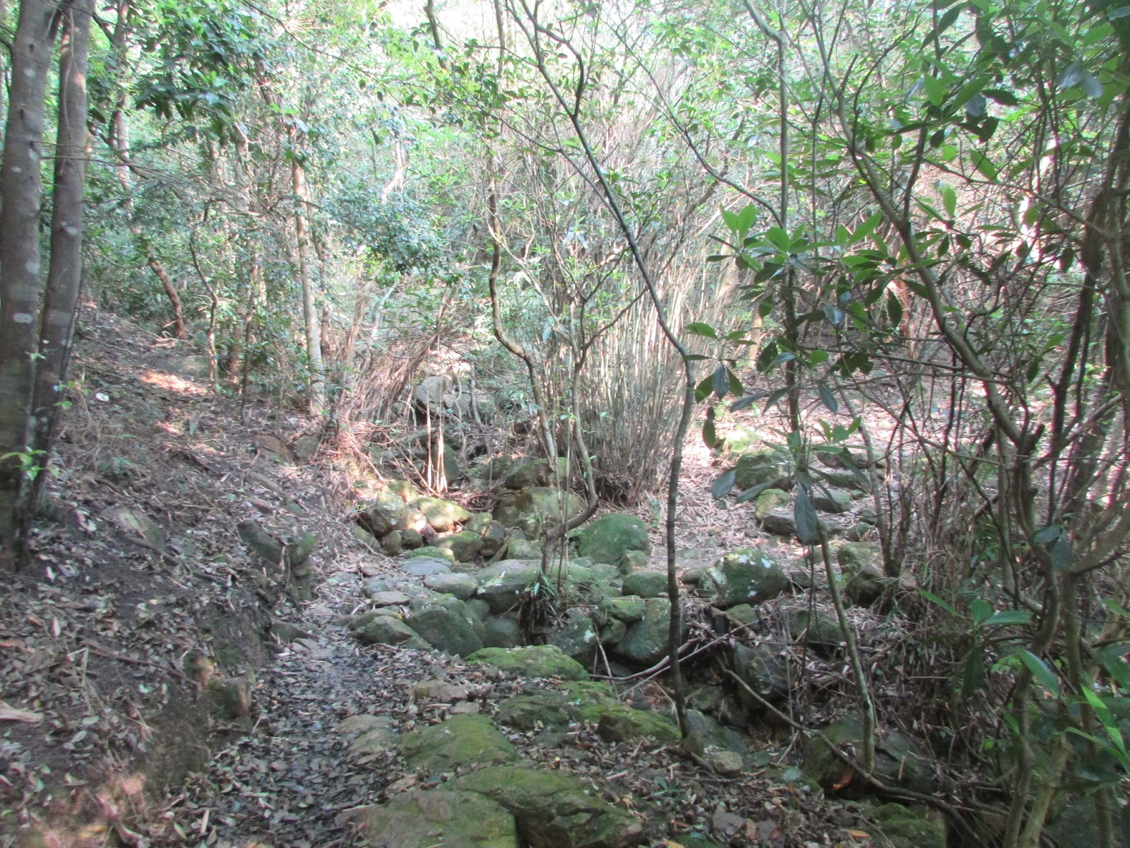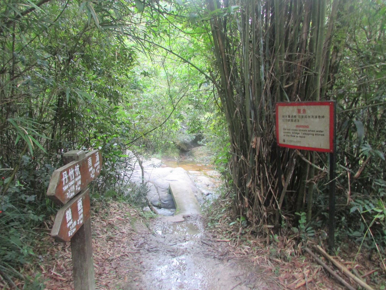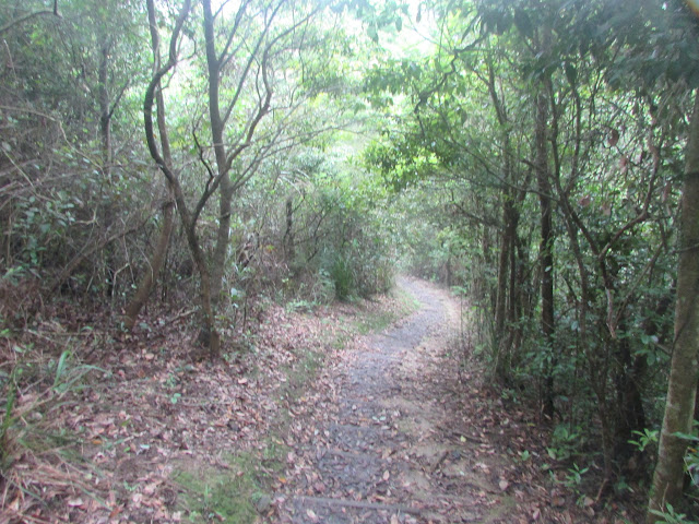 在燒烤場旁樓梯上鶴藪郊遊徑,郊遊徑經丹竹坑繞一圈,另一邊則是村徑。一直上至較平緩的位置,轉左邊沒有引路帶的小徑,很快入極密林地帶,裡面只有不太明顯的路胚,加上蜘蛛網頗多,有點悶熱。山上幾乎無景可賞,最高點只有一座不明顯的標高柱底座,也難怪不受遊人歡迎。休息幾分鐘,原路接回郊遊徑,再經一段平緩的山徑往丹竹坑。郊遊徑整體難度不高,相信適合新手前遊。