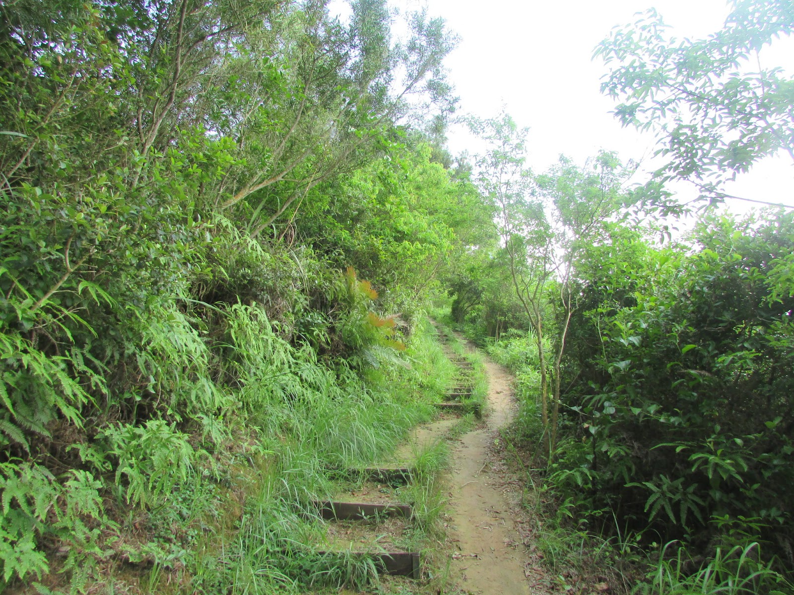 在燒烤場旁樓梯上鶴藪郊遊徑,郊遊徑經丹竹坑繞一圈,另一邊則是村徑。一直上至較平緩的位置,轉左邊沒有引路帶的小徑,很快入極密林地帶,裡面只有不太明顯的路胚,加上蜘蛛網頗多,有點悶熱。山上幾乎無景可賞,最高點只有一座不明顯的標高柱底座,也難怪不受遊人歡迎。休息幾分鐘,原路接回郊遊徑,再經一段平緩的山徑往丹竹坑。郊遊徑整體難度不高,相信適合新手前遊。