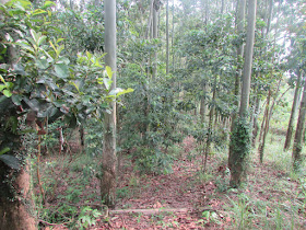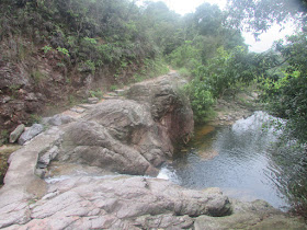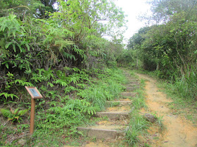 在燒烤場旁樓梯上鶴藪郊遊徑,郊遊徑經丹竹坑繞一圈,另一邊則是村徑。一直上至較平緩的位置,轉左邊沒有引路帶的小徑,很快入極密林地帶,裡面只有不太明顯的路胚,加上蜘蛛網頗多,有點悶熱。山上幾乎無景可賞,最高點只有一座不明顯的標高柱底座,也難怪不受遊人歡迎。休息幾分鐘,原路接回郊遊徑,再經一段平緩的山徑往丹竹坑。郊遊徑整體難度不高,相信適合新手前遊。