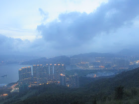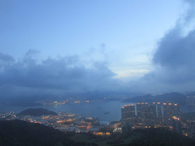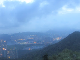 是日雲量不少,故日落欠奉,不過天色仍很明朗,暮色不算差。另一排遊人已先行下山,而坳仔繼續攝下附近馬路、民居、工廠亮燈的過程,再過十五分鐘,夜色更濃時始經南脊下山,七點半接回郊遊徑,再在林中緩步而下廿分鐘,抵達相思灣巴士站作結。
