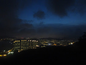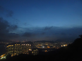天文台的即日預報指是日天氣不太好,而且已是五點半,想不到還有很多人仍上山,有的更看日落,可能那裡近市區而大受歡迎,相信在秋高氣爽的假日午後,山頂肯定會人山人海,甚至「插針也插不入」了。幸好有人也在山上看日落,所以坳仔順道欣賞山上入黑的景致,在山上拍攝晨暉暮色是坳仔很想做的事,但一直不太敢去試,始終單獨夜行其實也容易遇上野豬或其他大型動物,特別是大坳門一帶野豬亦較多。