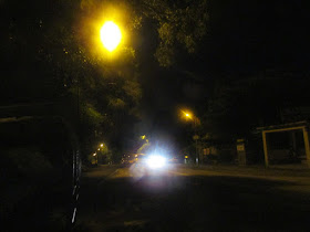 往布袋澳的馬路,在路燈下有如一尾龍: