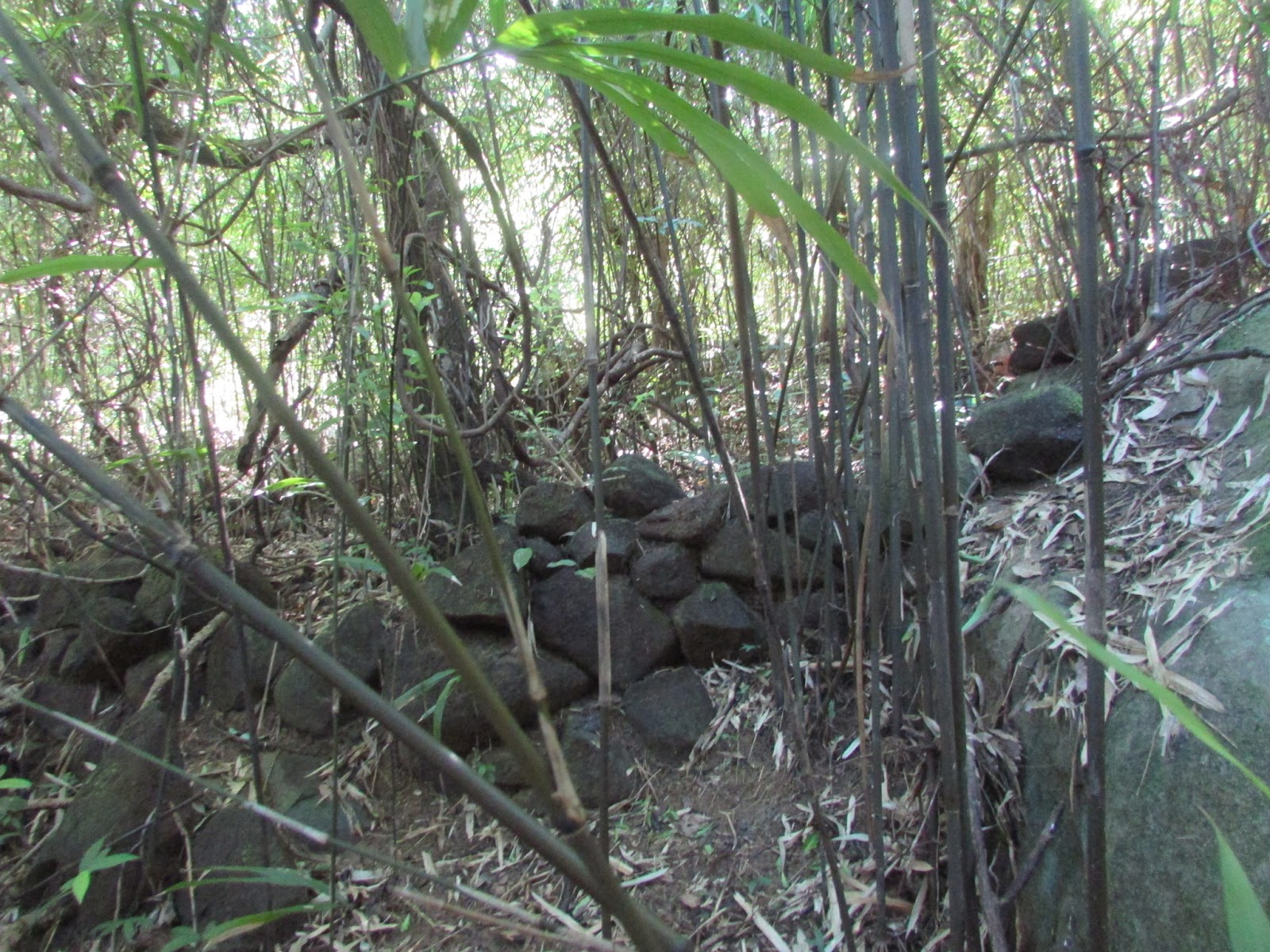 烈日下的樹林,有不明石碑乙座: