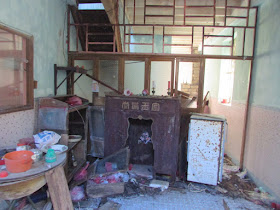 當然,有一些廢屋屋頂已破落,雜物佈滿一地: