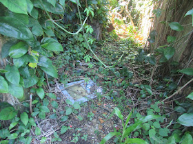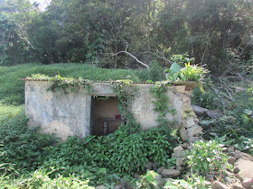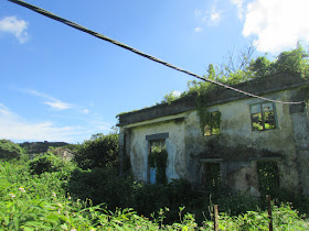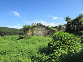 稍低處已長滿雜草的破屋: