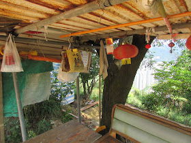 沙螺洞是個引起非議多時的地方,由於有車路連接,有發展潛力,但據說那裡生態價值亦是很高,變成環保團體、發展商及原居民之間的「戰場」,從早期的四驅車、非法入境者,至近期復村後的丁屋、骨灰龕、油菜花等,那裡都有份的。張屋旁新闢的油菜花海,月前吸引了大量遊人,花海中央立著個觀鳥亭。現在是夏天,當然沒有油菜花可看,原本的油菜花海又被野草佔據了,而且還帶著荊棘,連觀鳥亭也難以走近,可謂變化真大。這裡的廢田,荊棘正常是不會如此多的,或許是人為破壞的後果。