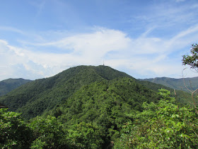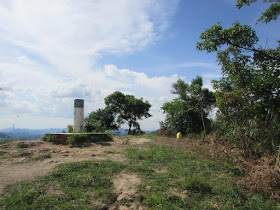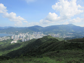 由富亨邨經匡智松嶺村口上山,初段經晨運客建成的園地,再經一段斜度頗急的樓梯,半小時後到海拔288米的「玉秀峰」測量柱(亦是接入衛徑的路口),這時體力已明顯下降,要躲在旁邊的大樹下休息。繼續在山徑上上落落,再過半小時,抵達九龍坑山頂附近,這時吹著陣陣南風,風勢更是有點大,也不得不休息一下了,邊賞景還享受著涼風,倍感舒適寫意。繼續上頂,繞過發射站,轉右又走半小時落沙螺洞村。