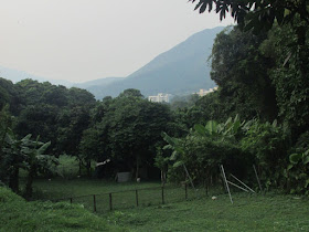從川龍小巴站轉入馬塘村,村裡有一些修車場,在村裡走了一段卻找不著路,回首至近村口,才知上荃錦坳的路口在左邊,還有明顯的路標。繞過一群村屋及溪澗就是上山的路,屋舍位藏山窩中,村狗不時在吠叫,感覺像是與世無爭般。十五分鐘後上抵牛寮,天氣太熱,在路牌處要小休幾分鐘才再上路,再上十五分鐘就到荃錦坳,途中有幾隻小蚊不斷在耳邊飛著,隨手也打死了兩、三隻。到荃錦坳時,看見有一些露營人士在清洗營具,想不到如此熱的天氣還有人露營,不過「好戲」在後頭,因為晚上迎來強烈熱雷暴,營友準會被嚇破膽了。