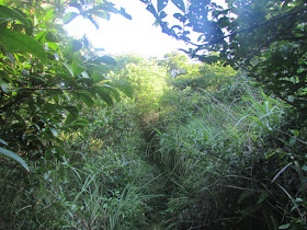 在舊電線杆旁小徑落茅坪村的最後一戶人家,可惜走了一段,野草實在太密: