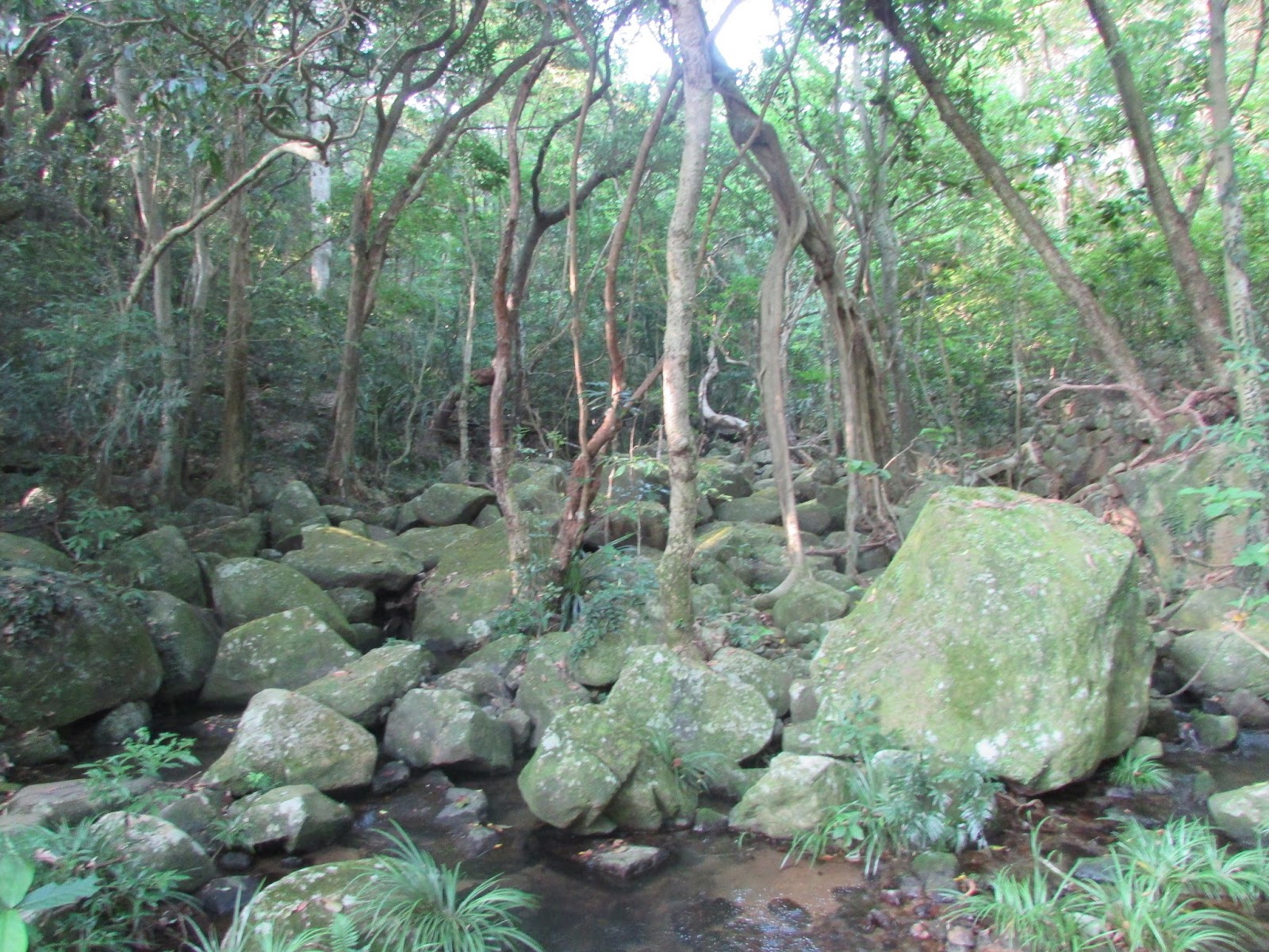 是日本來想上蚺蛇尖欣賞大浪四灣夏日美景,可惜妮妲襲境前夕,能見度轉低,而且前一天午後強熱對流突襲,在天氣不穩的日子選擇短程線路為佳,想起已有近兩年沒有走過大腦古道,特意再走一趟,但改一道較少人走的路下山,在蠔涌谷時亦走村徑避開馬路上的車輛。