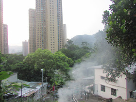 三點十五分在蠔涌起步,臨下車時在南邊圍迴旋處前堵車了十分鐘左右,在假日時是很常見的,因為那裡由兩線變成單線行車之外亦有支紅綠燈。一下車前行一分鐘就是擁有四百多年歷史的車公古廟(車公是宋代的大將軍,曾平定南方的一場戰亂),那座車公廟雖然遠遠不久沙田的著名,歷史卻較沙田長久,再前走一點是已荒廢的亞視錄影廠,而亞視已在今年四月停播了。