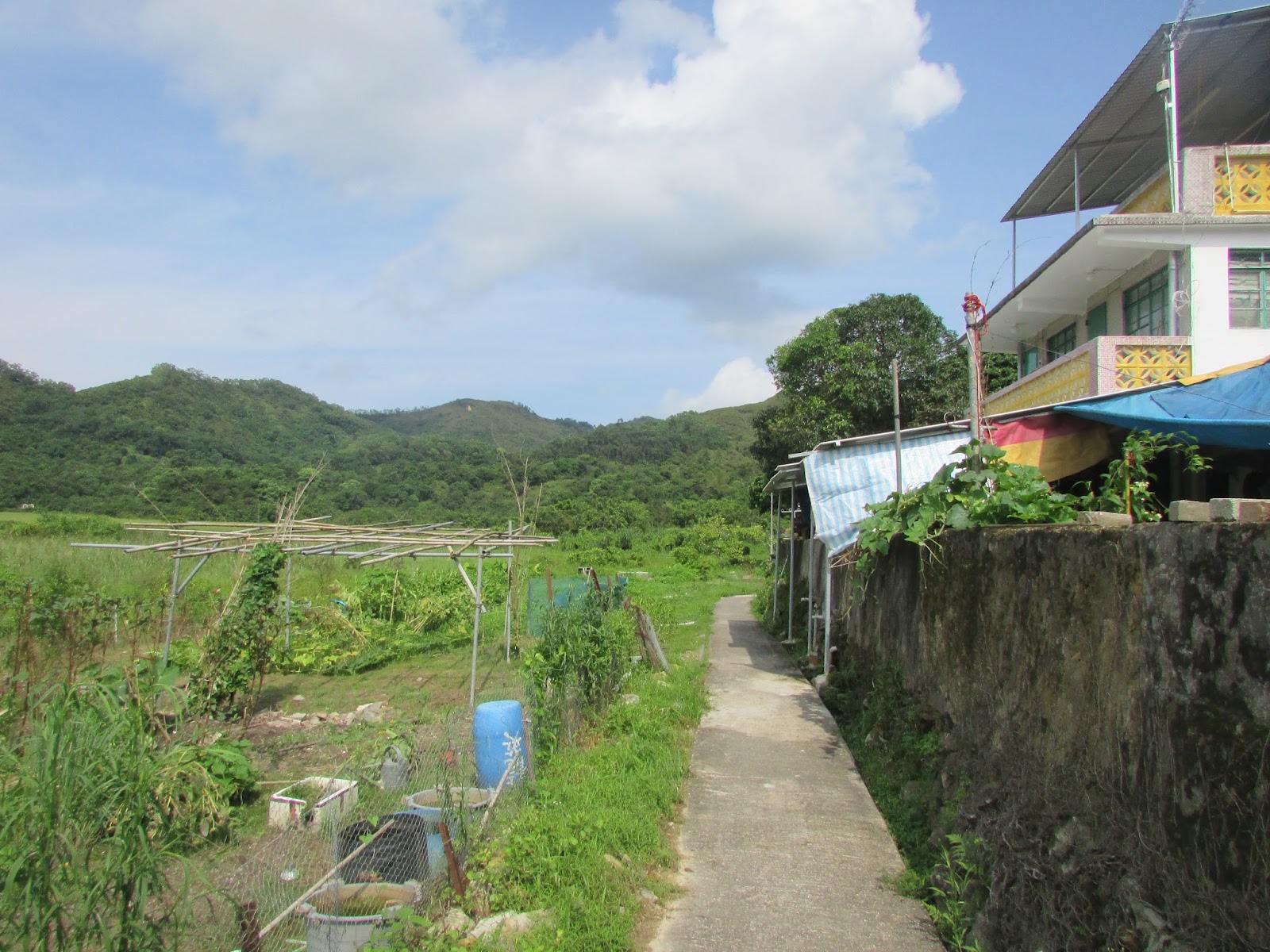 是日與友人希望遊覽雲英古道(連接鹿頸陳屋至近三擔租的荒僻古道)及附近的山澗,惟走了一段發現樹叢頗密,而且熱雷暴更似乎朝著而來,只好急急撤退,靜待一會後轉走林中的橫七古道往大尾篤,途經已荒廢的下七木橋村及橫山腳上、下村。