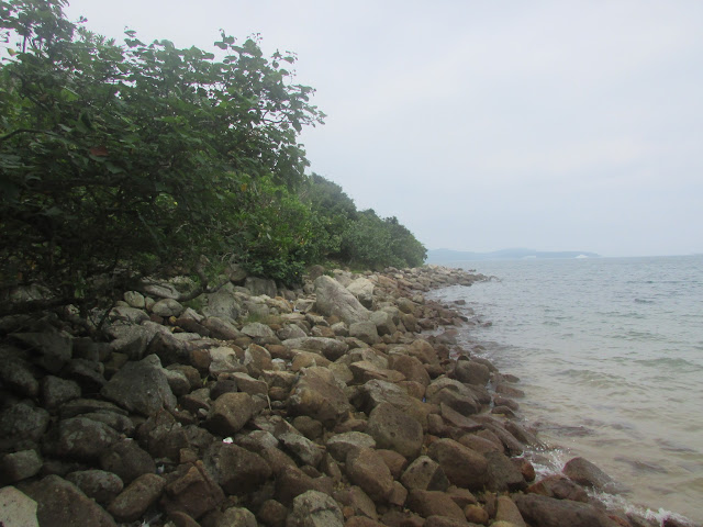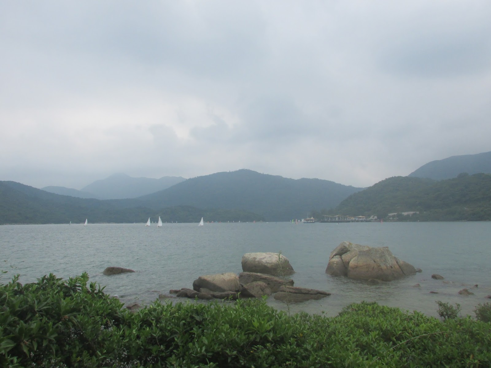 下午一時左右在大灘巴士站起步,穿過大灘村到大灘郊遊徑,不過那裡不是起點,起點在海下路。郊遊徑繞著高塘口西側岸邊而行,不少位置可見黃石碼頭、高流灣半島及蚺蛇尖,沿途上落不多,亦靠近灣仔半島露營熱點,所以有不少遊人。在岸邊山徑疾行個多小時到攔路坳,是踏進灣仔半島的「大門」,再依指示牌續走十五分鐘到海下村。攔路坳至海下村中段有個由世界自然基金會興建的海洋生物中心,聽到裡面人聲鼎沸,當前是周日下午,有活動是很正常不過的事,而海下灣也有不少遊人玩水上活動。