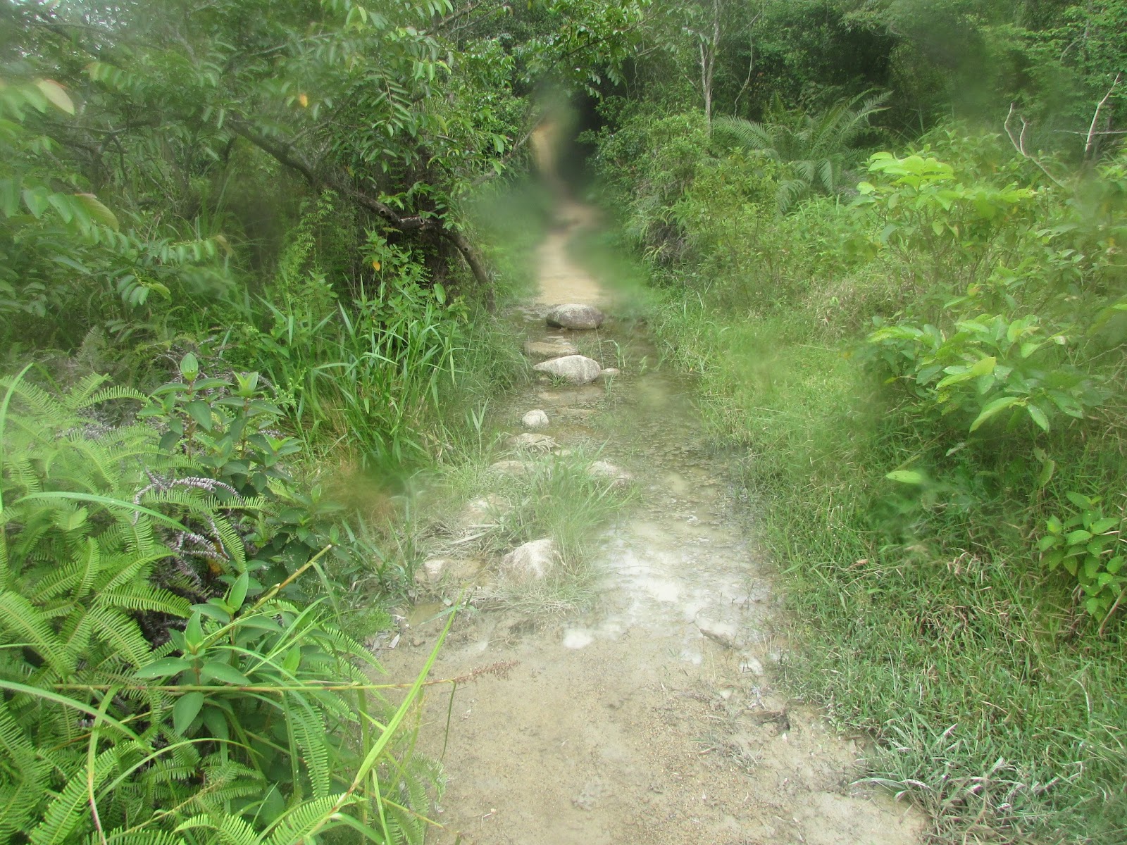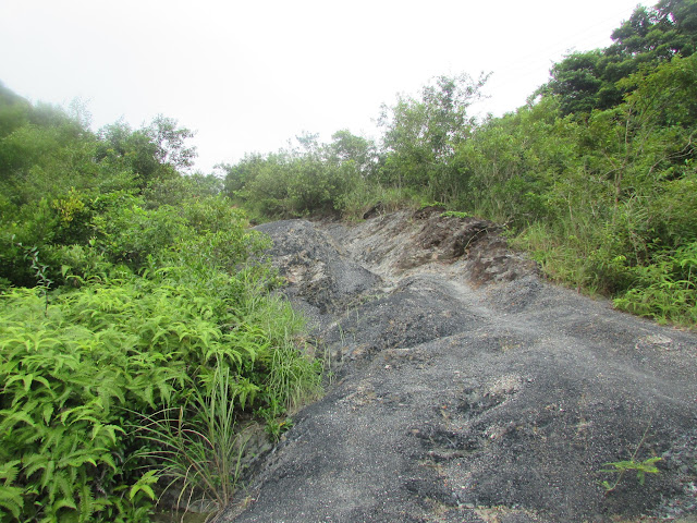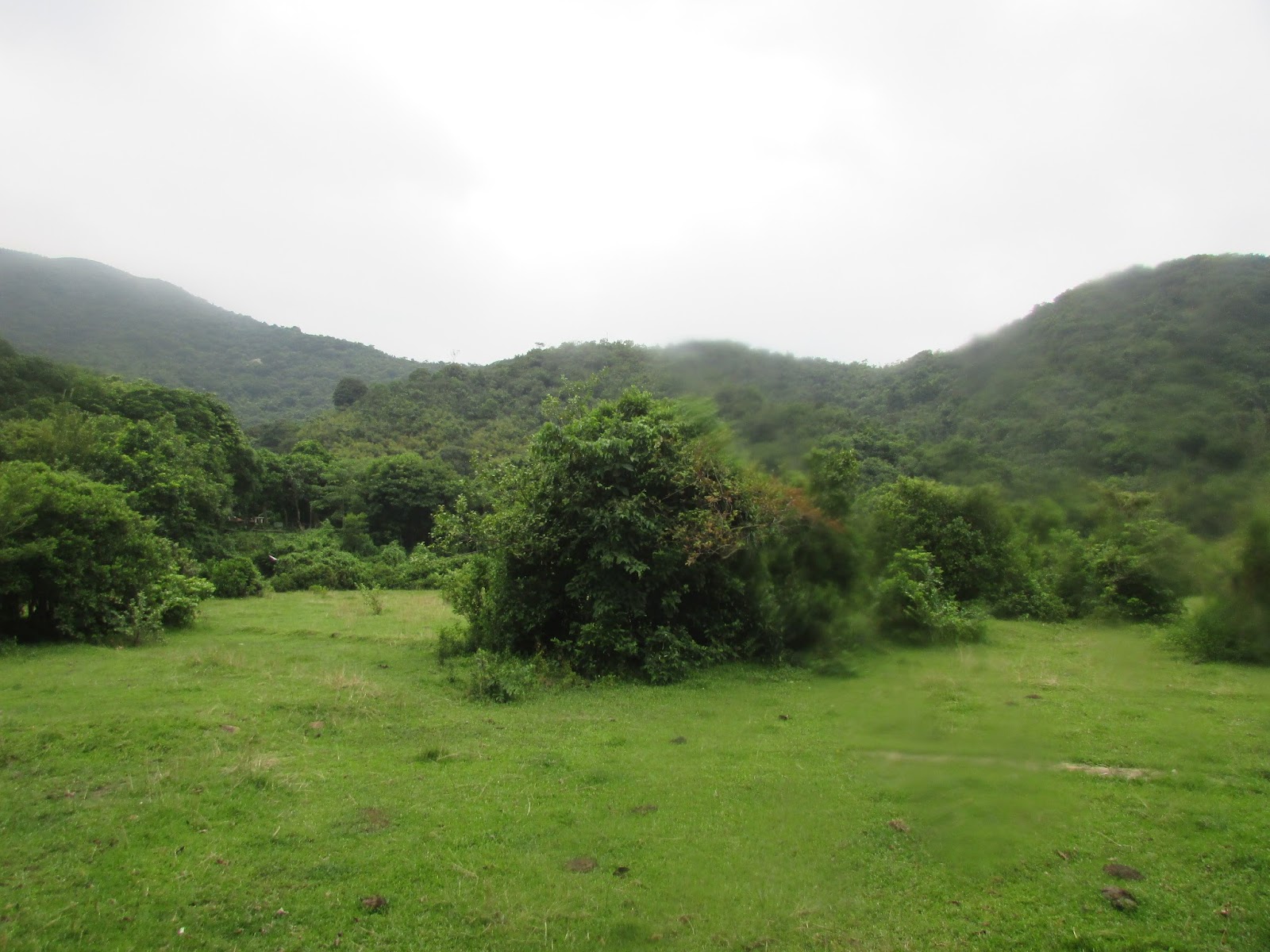 再過廿分鐘步程,直落荔枝莊,對上一次到荔枝莊已是兩年多前(當時裡面無村民,有點「猛鬼」的感覺),是日則見起碼兩家人,還有最少一家士多營業。荔枝莊有街渡往來馬料水(每日兩班,假日三班),村裡有天然大草地,交通亦頗為便捷,頗受露營者歡迎。荔枝莊村有捷徑直上蛇石坳,不過現在仍是雨季(旱季時還有水窪),且屋外有群犬駐守,只好改走回頭路,轉山徑經蛇石坳落深涌。