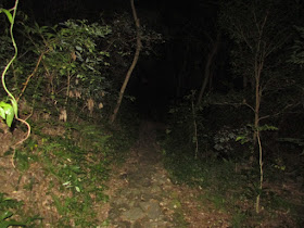 休息約十五分鐘上山頂電視發射站,沿途轉為泥路且浮沙碎石較多,夜行時更需小心,不能心急。那裡正處開揚山脊,亦正值滿月,月光把山徑與旁邊樹林照出明顯的輪廓,可以不用亮頭燈,不過月光的引路作用始終有限,大概只是日落後半小時餘暉照射的亮度,所以一切仍是慢走為佳。