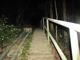 又休息一會,後經慈沙古道落沙田圍,途中經一個燒烤場,佳節時份,場內到深夜還是相當熱鬧。沿明顯山徑走半小時到水泉澳郊遊地點,雖然在黑夜難以看清路況,但此段大致為樹林地帶,間中穿過小溪,有澗道在旁邊緩緩而下,難度當然不算高。依水泉坳路繼續下行,一點正到沙田圍站,中秋夜行旅程隨之完成。