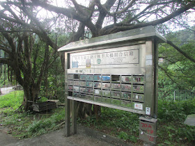 上花山引水道入口就在大橋村口處,朝著蜿蜓的引水道走廿分鐘到上花山路口,途中經過一些零散寮屋,另外引水道離槍會最近處只有約百餘米,所以也間中聽到會員練槍時發出響亮的砰砰聲,不過那裡還算安全,因為旁邊也有民居。在路口處過橋上上花山,初段見「報德亭」及「樂心園」,證明沒找錯入口,然後再上行十分鐘到上花山村腹地。上花山現時有很多人住