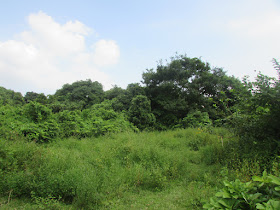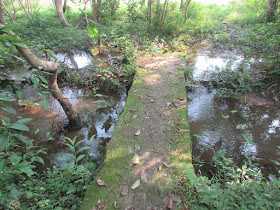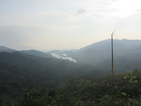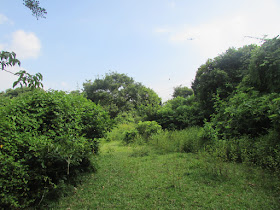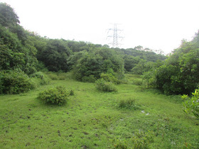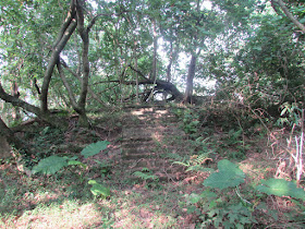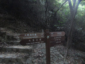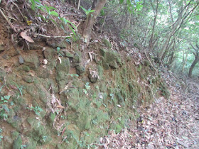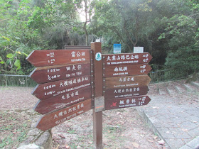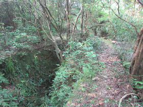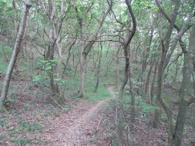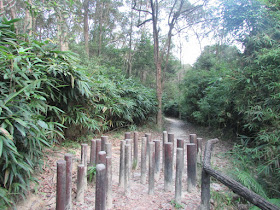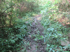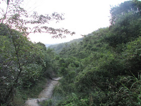 探過上塘,依村徑急落下塘瀝,再急上麥徑九段,原來還上經蓮花石澗畔的小路出大欖林道,不過下塘瀝一帶的廢田泥濘還是很多,只好改路。在麥徑九段又走小段,轉往越野單車徑經田夫仔山,去年初夏時只到過山上的瞭望台,不過當時天氣太熱,並無走其他小徑,而附近的越野單車徑也未啟用。因那裡屬越野單車徑,斜度當然不能太高,山徑也不能太窄,雖然步在越野單車徑上,現在其實也尚算安全,因為越野單車隊通常在假日上午才出動,不過還是要小心,現在的「安全」純粹是機率問題罷了。由田夫仔山西脊落,途中轉入未被修箿的山徑,其中有段更是又斜又多浮沙碎石,亦有小段屬極密林地帶,所以要加以小心。