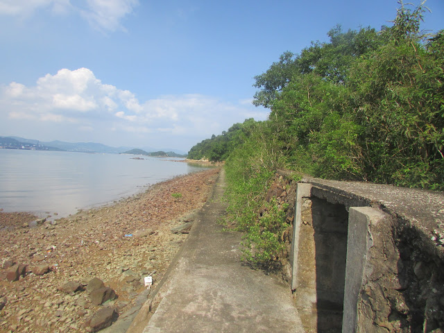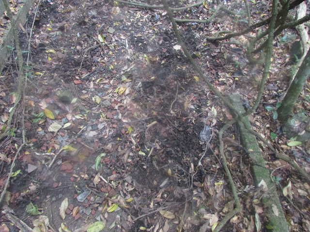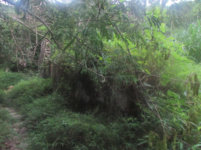 趁水退及有時間,再經磨刀坑海岸到牛屎湖灣,那段八星期前才走過,所以很快就完成。糧水只餘一升左右,決定經山路出西流江,順道視察牛屎湖村環境是否適合露營,因為坳仔希望趁下月連假時結伴到村裡平地過夜,惟是日發現地上仍是滿是野豬翻土的痕跡,而且受波及的範圍更多,看樣子未必適合露營了。牛屎湖村已荒廢半世紀,村民據說因沉船事件後急速搬走,至今還存著一些破屋及完整的爐灶、豬圈遺跡,但相隔多年,遇上靈異事件的機會也不會大吧。沿密林小徑出三椏出,路邊野草小樹,尤其是芒萁較上次到訪時還要密,結果用了近四十五分鐘才走完,是歷來最慢。在三椏村公廁梳洗一會,最後經「下路」往烏蛟騰完成。