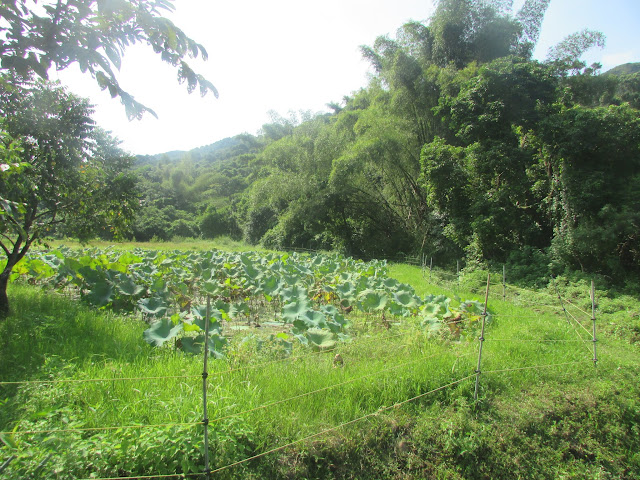 穿堤壩,經山塢往荔枝窩的路要先急上一座小上崗,可能是剛才疲於應付密林關係,上山崗後略有中暑先兆,只好慢走,半小時步程抵荔枝窩。到荔枝窩時已是兩點半,可能是臨關門關係,豆花已售罄,連雞粥都只有兩小片肉,其餘的全是內臟,明顯較前幾次為差,為免「阻人收工」,快快吃完再起步。