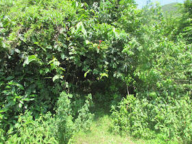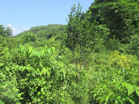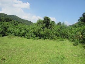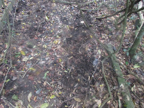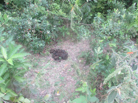 趁水退及有時間,再經磨刀坑海岸到牛屎湖灣,那段八星期前才走過,所以很快就完成。糧水只餘一升左右,決定經山路出西流江,順道視察牛屎湖村環境是否適合露營,因為坳仔希望趁下月連假時結伴到村裡平地過夜,惟是日發現地上仍是滿是野豬翻土的痕跡,而且受波及的範圍更多,看樣子未必適合露營了。牛屎湖村已荒廢半世紀,村民據說因沉船事件後急速搬走,至今還存著一些破屋及完整的爐灶、豬圈遺跡,但相隔多年,遇上靈異事件的機會也不會大吧。沿密林小徑出三椏出,路邊野草小樹,尤其是芒萁較上次到訪時還要密,結果用了近四十五分鐘才走完,是歷來最慢。在三椏村公廁梳洗一會,最後經「下路」往烏蛟騰完成。