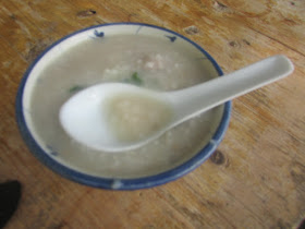 在露天士多享用雞粥: