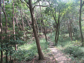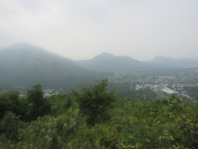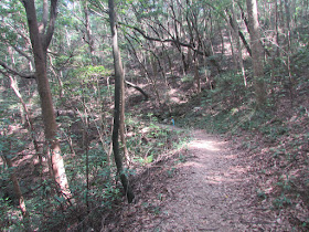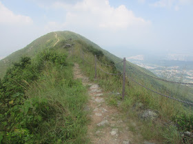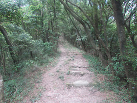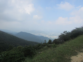 飯後依扶輪公園自然教育徑上荃錦坳,以往都是循此而下,往上還是第一次,整體難度當然不高,經士多及停車場後依麥徑直上大帽山頂禁區閘外,為節省路程,上頂的盤山馬路時部分位置選用了捷徑。風力微弱,加上濕度偏高,在半路的大帽山停車場時已經滿身大汗。落四方山坳的馬路一向是較當風的位置,是日也不例外,那裡雖然更適合跑著而下,但卻刻意的放慢步速,享受行程中難得的涼風。
