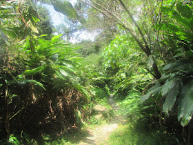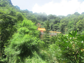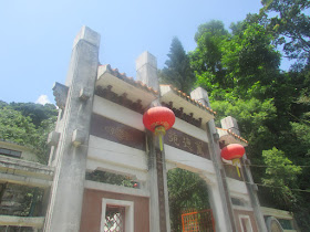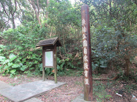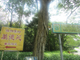 經四方山坳落梧桐寨村出林錦公路,以往的都是走瀑布群,但賞瀑並非是日行程目的,所以把握時間,經林中之字路直落至萬德苑,先進苑內參觀,順便開水喉為身體降溫。爽步出公路,之後沿路邊上嘉道理農場外,農場入口對面乃上大刀屻的入口。