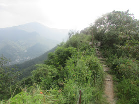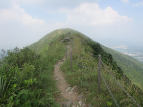 大刀屻因山脊尖削似刀而名,上次到訪已是兩年前事,最窄處乃近頂的「刀屻天險」但近年已加欄杆,或是前一日才走過狗牙嶺「一線生機」,那裡真是連「險」也談不上。由巴士站至「刀屻天險」幾乎全是向上樓梯,中間還有個大V谷,此時下午一點多,秋老虎氣勢更猛,走起來非常辛苦,過「刀屻天險」後還有十五分鐘步程到山頂。到大刀屻時身體幾近累至散掉,望著林村谷的景色一片矇矓,只好專心的休息。休後往北大刀屻,途中變成以平緩林蔭路為主,十分好走,但上斜時已感覺到力氣已經大不如前,然後在北大刀屻轉落打石湖橋頭。
