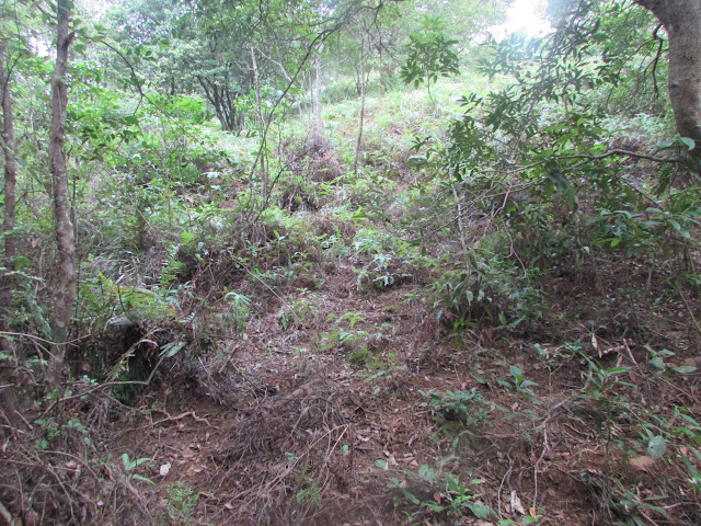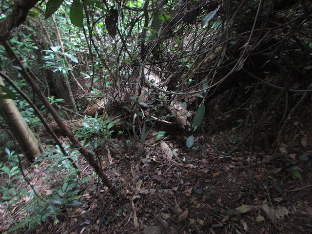 台地左面有隱蔽小徑而下,但前面已被塌樹所阻: