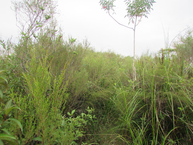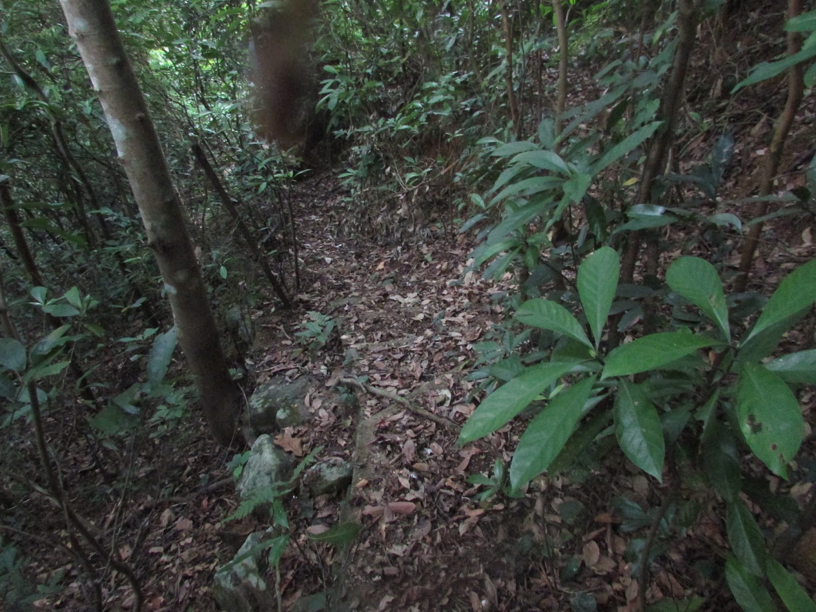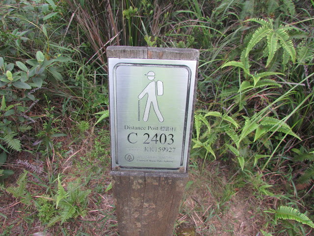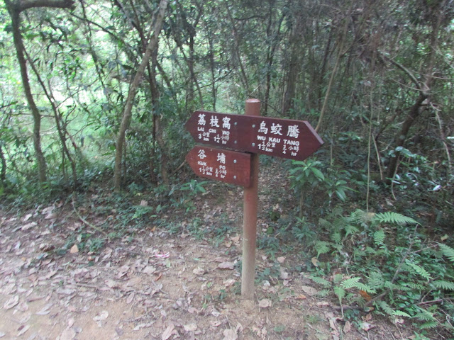 從鳳坑附近轉上家樂徑,先經「百芳園」觀景區,可惜附近已長滿大樹,下方南涌、鹿頸的風光都難以目睹了,然後經植林區小徑轉入金龍脊。脊上沒甚可觀的,都是大上小落,後段轉入密林,然後再經一小段竹林接烏蛟騰郊遊徑,由「百芳園」起計至郊遊徑需時近一小時,可惜那裡惱人的「竹葉草」實在太多。現在至十一月是竹葉草的播種期,它們的種子有倒刺且非常鬆散,有點像「鬼針草」,只用吹灰之力就把它從葉片移除,如穿運動衣褲闖林的話就會黏滿種子,而且極難完全拔除,秋高氣爽無疑是郊遊遠足的好季節,但看來不是闖林的好季節了。