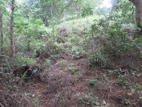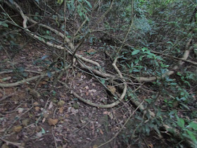 台地左面有隱蔽小徑而下,但前面已被塌樹所阻: