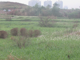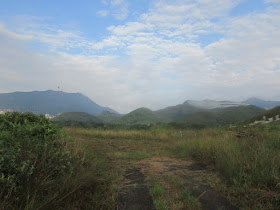 蓮麻坑村年初起雖然不屬禁區,不過村前蓮麻坑路倒是有個小型口岸「國際橋」(對面為深圳長嶺村,長嶺村村民在蓮麻坑或有祖地,所以村民朝八晚六期間可過境耕種),為防非法出入境,所以那段蓮麻坑路還屬禁區,在可見將來亦難以「解禁」,只能朝邊界圍網外圍崎嶇山路出十二號警崗,即白虎山附近、蓮麻坑路東端禁區口前面。二月尾此段路走過一次,當時為盡量貼近圍網,是日則穿過橫瀝廢田區後上「嚤囉樓山」(157米)山坳,再接樹林地帶落警崗旁,或許泥土已被踏得平整緣故,浮沙碎石明顯較少。