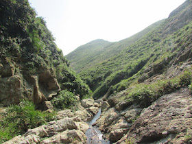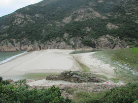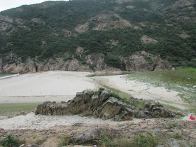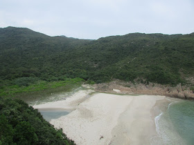 罾棚角咀大休過後,繞經山腰小路落浪茄仔,那裡沙質與浪茄般都是水清沙幼,不過地處偏僻,且山徑難度較高,所以鮮有人尋訪,灘上還有不少從內地飄來的垃圾。浪茄仔盡頭有道闊約三四米的小溪,正盤算著是否要涉水而過,原來灘深處有些石塊用作踏腳,之後就上一段斜度頗高的岩面,再接密林環腰路往浪茄。浪茄灣遊人不少,還有一些人在露營,惟前一晚是周六,所以營內垃圾處處,真是要向大眾好好推廣「自己的垃圾自己帶走」的意識了。