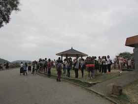東壩上遊人眾多,很多人等候的士回市區: