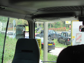 秋季伊始且天色不俗,很多市民趁假期到西貢郊遊,結果造成大塞車,最後在北港下車徒步廿分鐘到市中心,期間車龍只前進了少許,市中心內街盡是等候開進停車場的私家車。在麥當勞外等候29R村巴,排隊人數不多,原來公司已派了大量加班車應付需求,沿途所見班次應少於十分鐘一班,起步時間為十一點半,只比預期時間遲了一點。